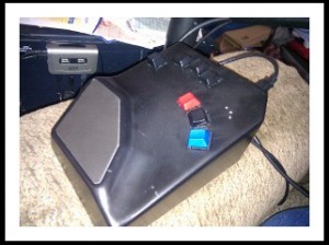 So I got an additional keyboard, an Infogrip BAT chording keyboard, that lets me do all of my typing with my left hand if necessary.  My tablet doesn’t take nearly as much effort on the right, so I can use the tablet for a long time without pain, but typing is far more difficult.  This keyboard takes a bit of practice, to learn all of the chords to generate all of the letters, but it’s worth the time.  It’s a lot less strain.